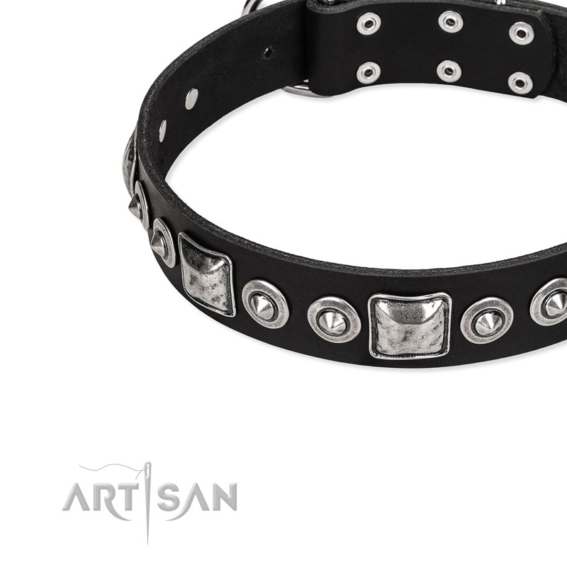 looks like a necklace on your pet’s neck. Dog-friendly materials, applied for manufacturing of this item, guarantee safe and long service of the collar. Increase your and your dog's mood, make his walking stylish with this excellent studded leather collar!