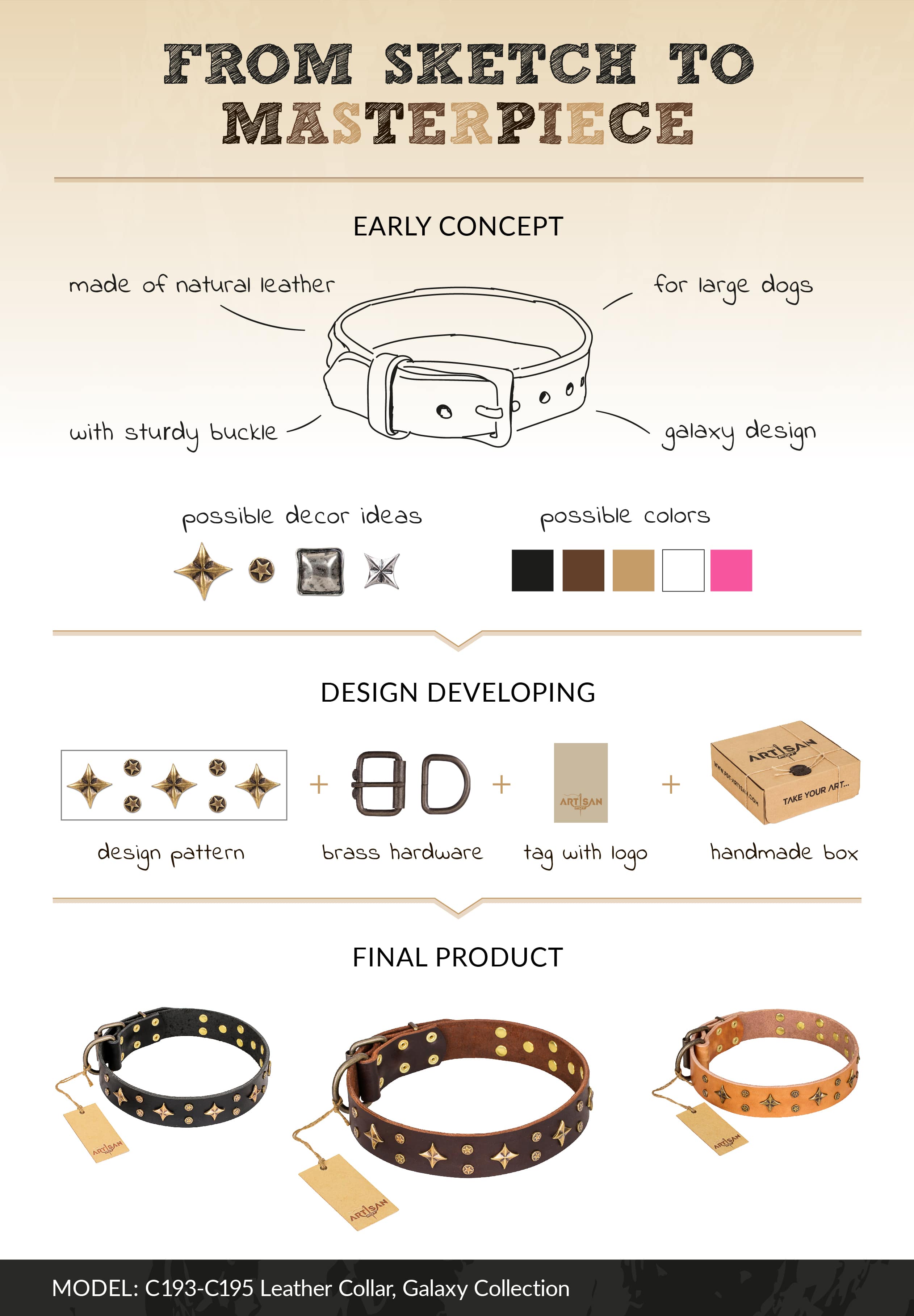 Do you buy your clothes at the leading designers? Feel lack of style in your dog's outfit? Choose then this exquisitely beautiful handcrafted accessory and apparel for your pet now! This wonderful leather collar was created with the compliance of a tradition of excellence in quality, design and craftsmanship.