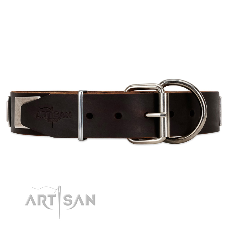 FDT Artisan Brown Leather Dog Collar for Walking with Your Sweet Dog