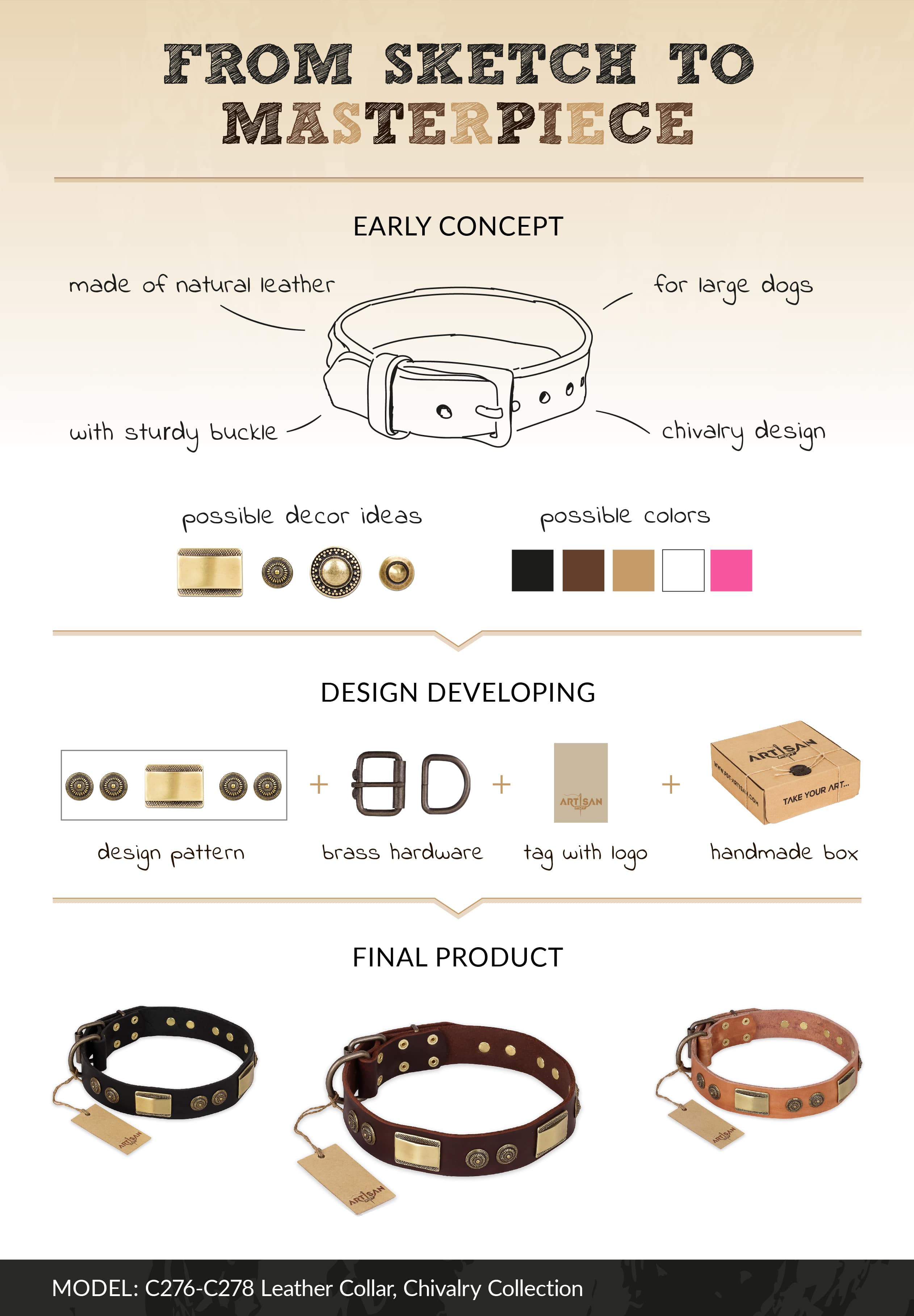 • "Ancient Egypt" FDT Artisan Leather Dog Collar with Old Bronze Look Decorations