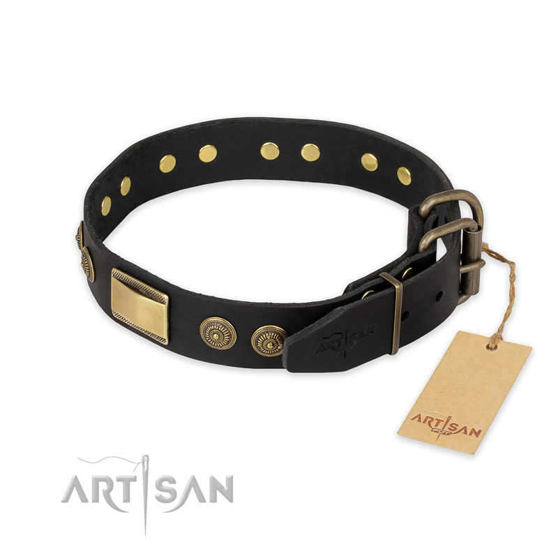 "Ancient Egypt" FDT Artisan Leather Dog Collar with Old Bronze Look Decorations
