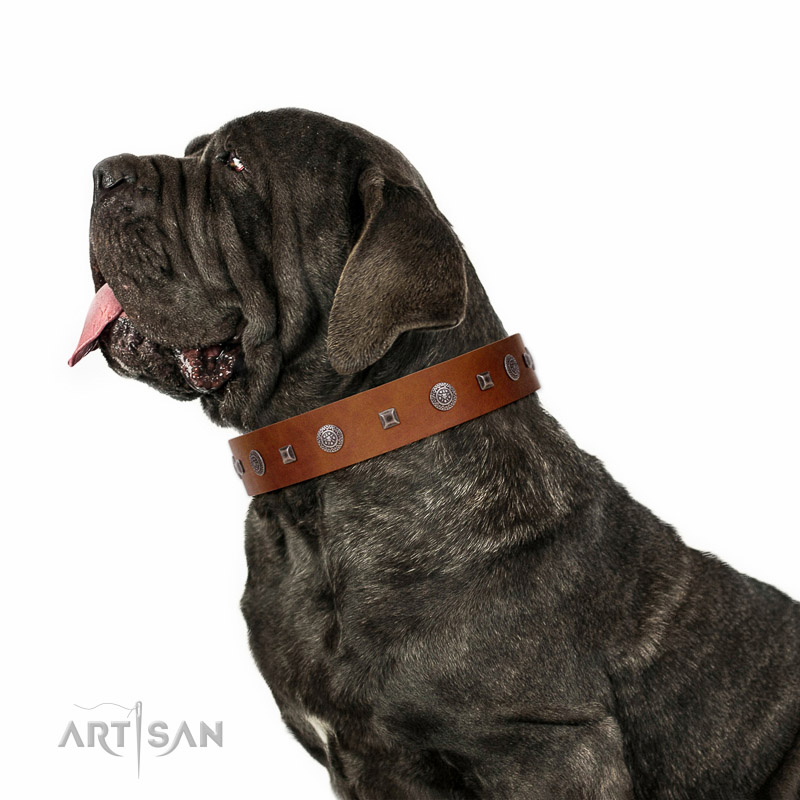 Premium quality tan leather Mastino Neapoletano collar for daily walks