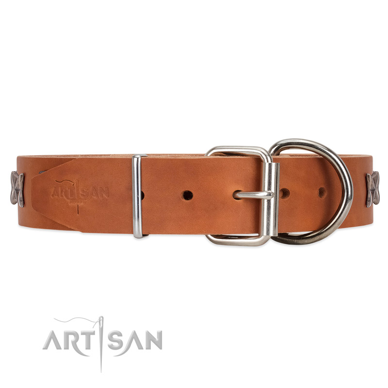 Tan leather dog collar delivers pleasant emotions