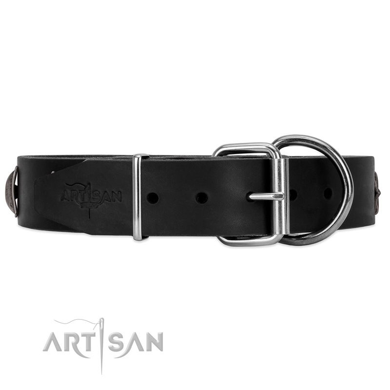 FDT Artisan Black Leather Dog Collar for Everyday Walking