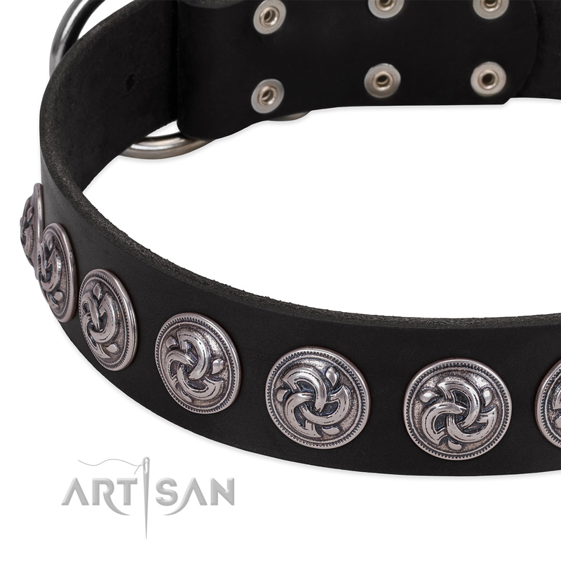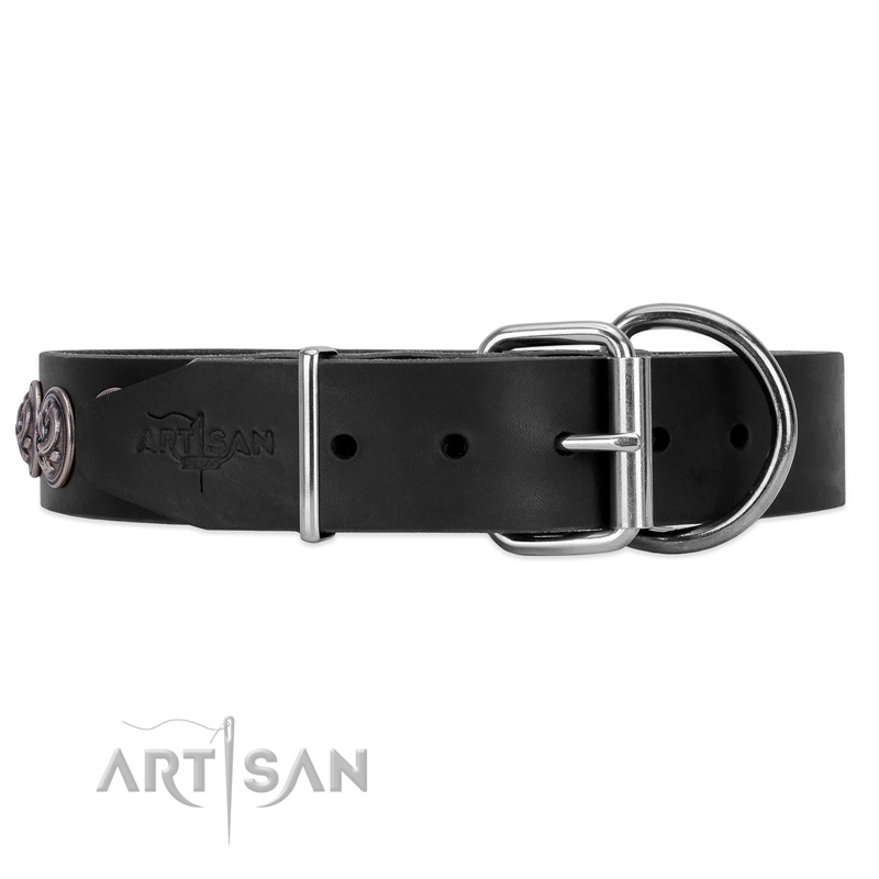 Black leather dog collar delivers pleasant emotions