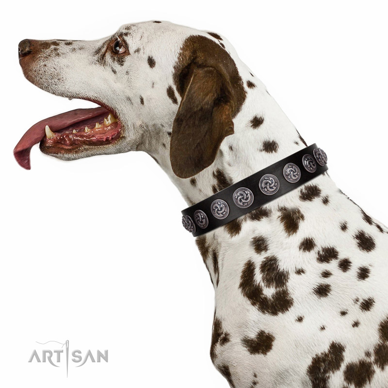 Premium quality black leather Dalmatian collar for daily walks