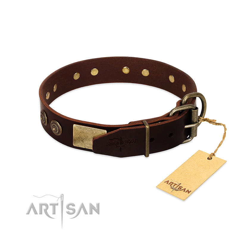 Trendy FDT Artisan Brown Leather Dog Collar for Comfortable Wear