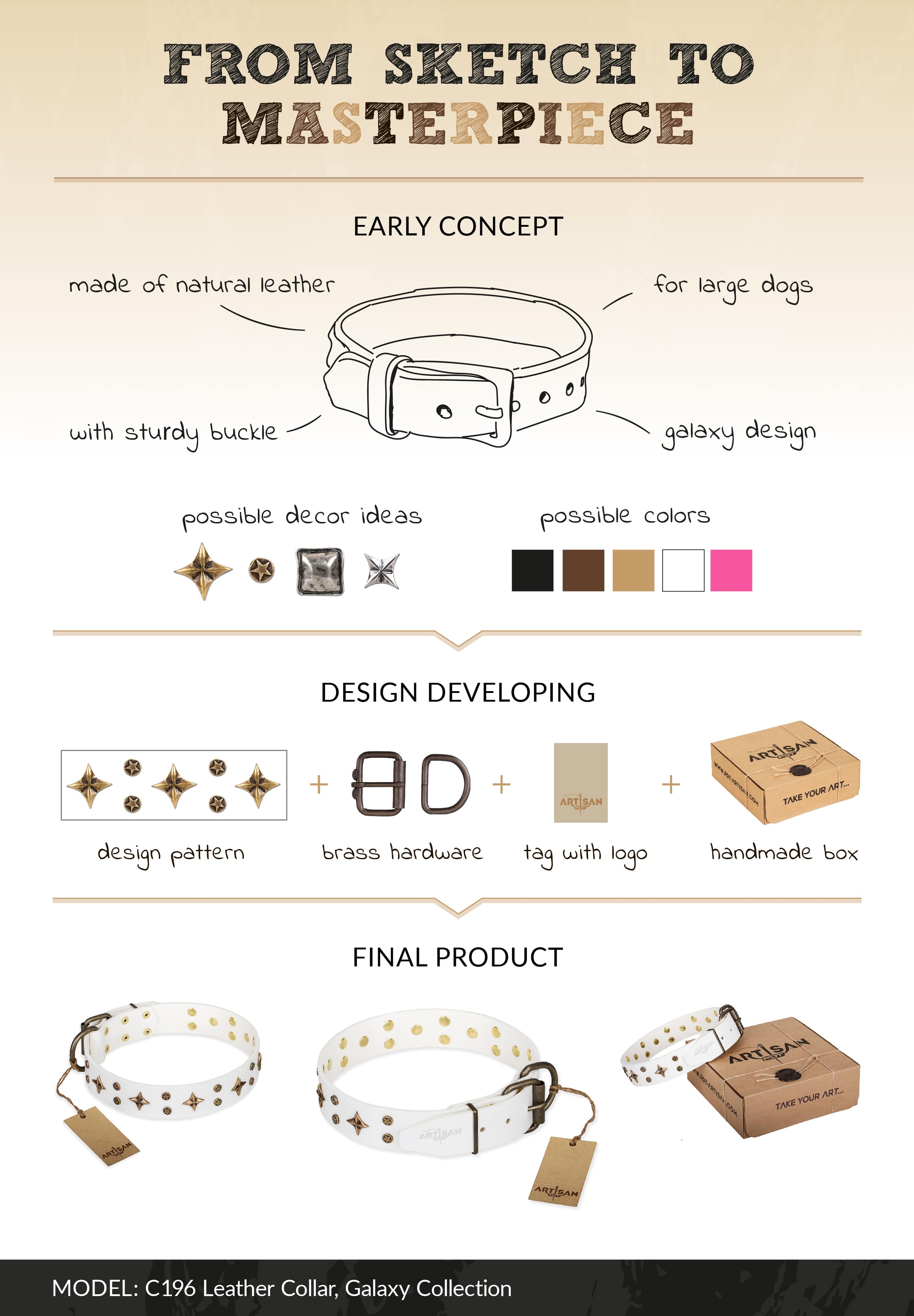 Galaxy Collection Handmade White Leather Dog Collar with Studs