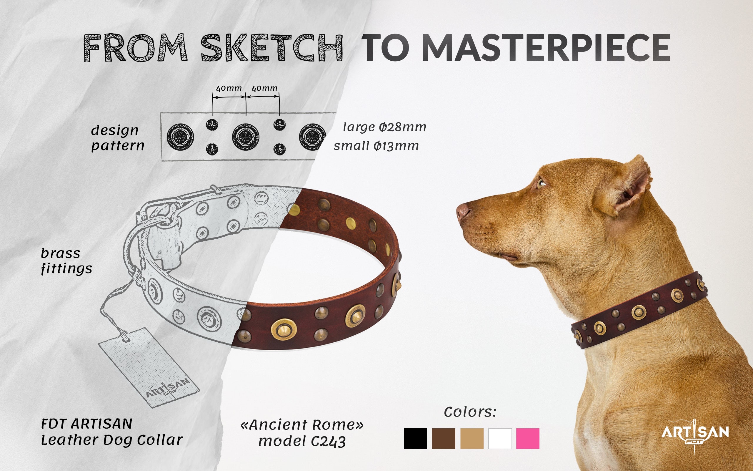 Ancient Rome Collection Handmade Brown Leather Dog Collar with Studs