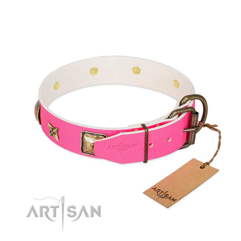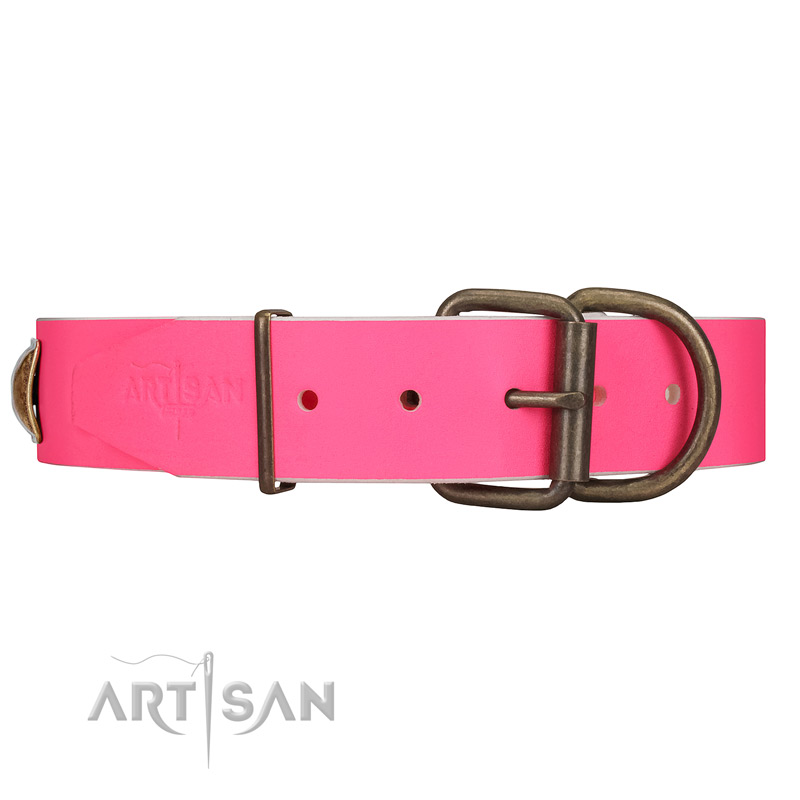 Everyday Pink Leather Dog Collar with Extra Reliable Hardware