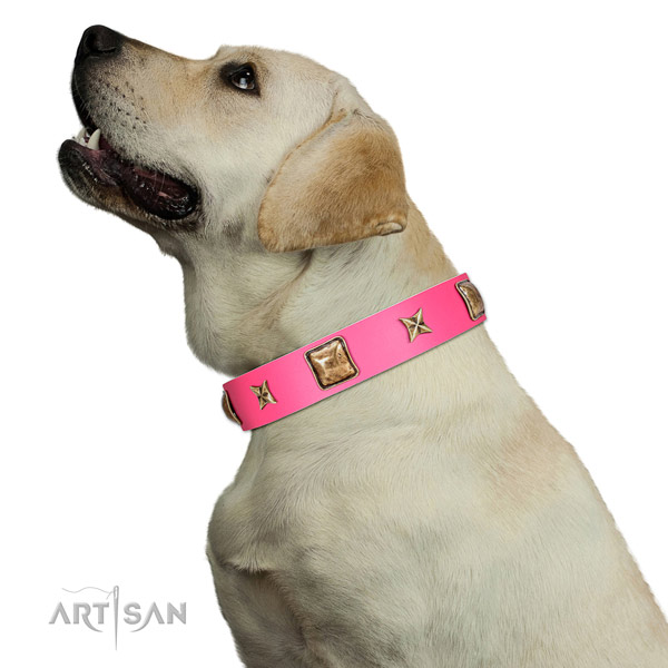 Daily Leather Labrador Collar with Rust Resistant Decorations
