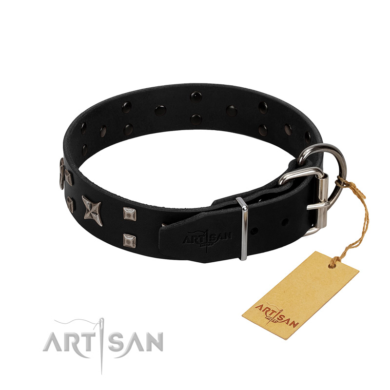 FDT Artisan Black Leather Dog Collar for Everyday Usage
