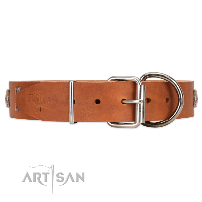Full grain tan leather dog collar suits canine perfectly
