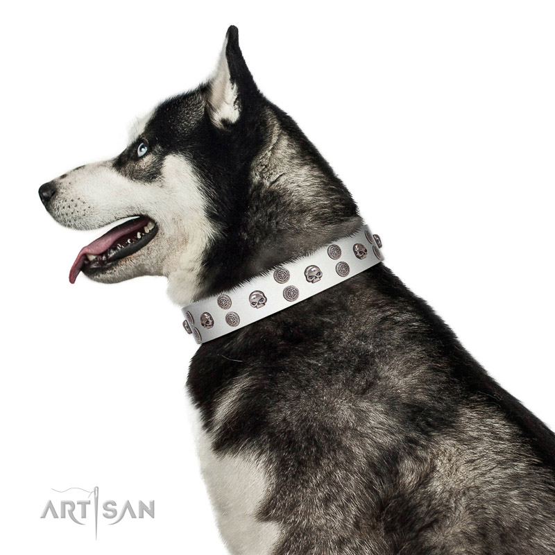 White leather dog collar delivers pleasant emotions
