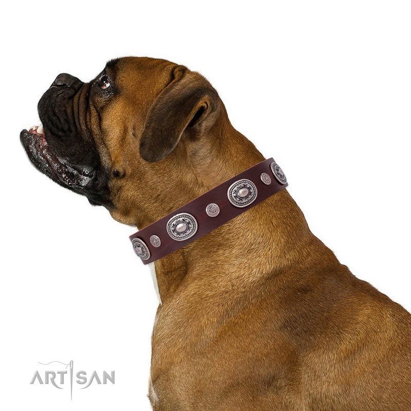 Boxer handmade genuine leather dog collar with studs