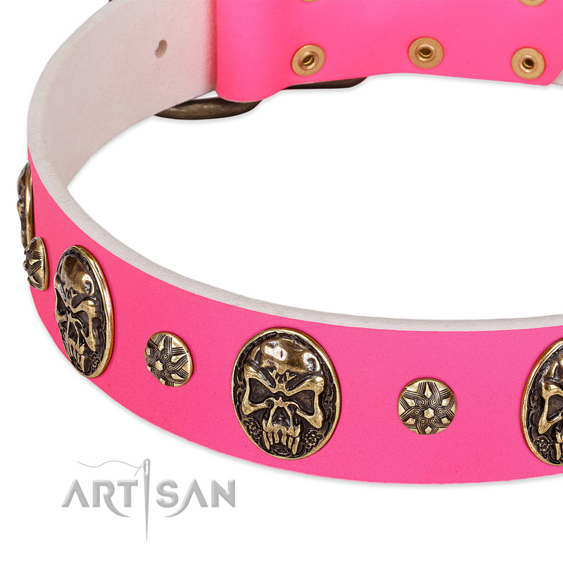 Let your furry girl flaunt her exquisite style in a stylish accessory adorned with a cool mix of studs and skulls. Your well-dressed dog will become the subject of your pride! Buy this FDT Artisan Leather Dog Collar and you will get exceptional quality, absolute durability and outstanding style!
