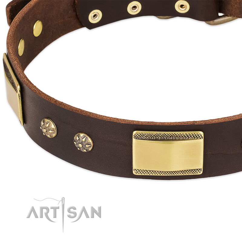 FDT Artisan Brown Leather Dog Collar with Brass Plates and Half-ball Studs
