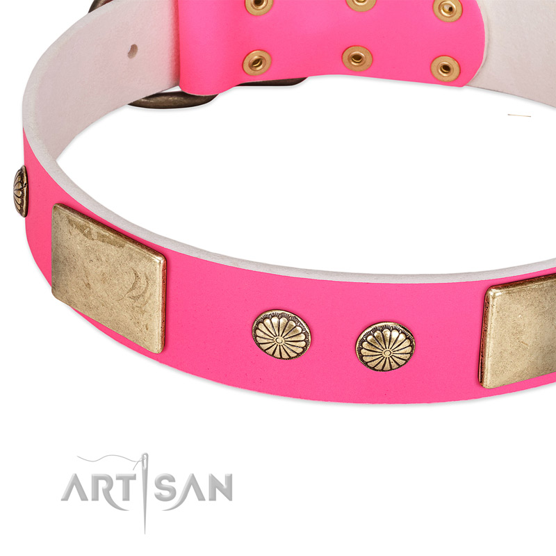 Safe and durable pink leather dog collar