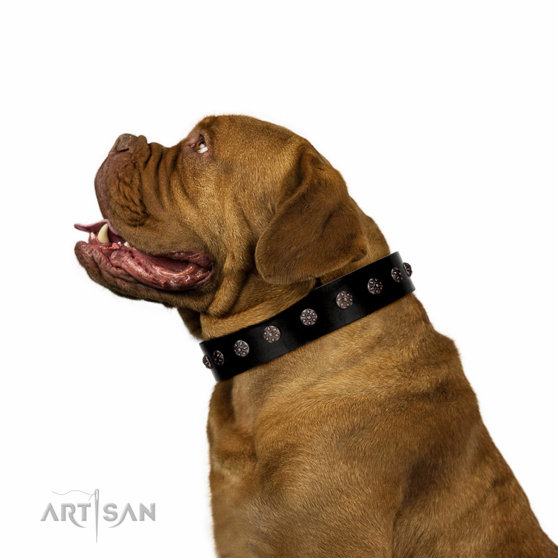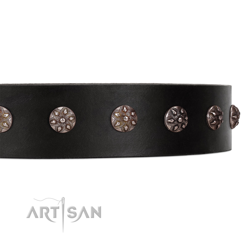 Amazing silvery decorations attract attention to FDT Artisan leather dog collar