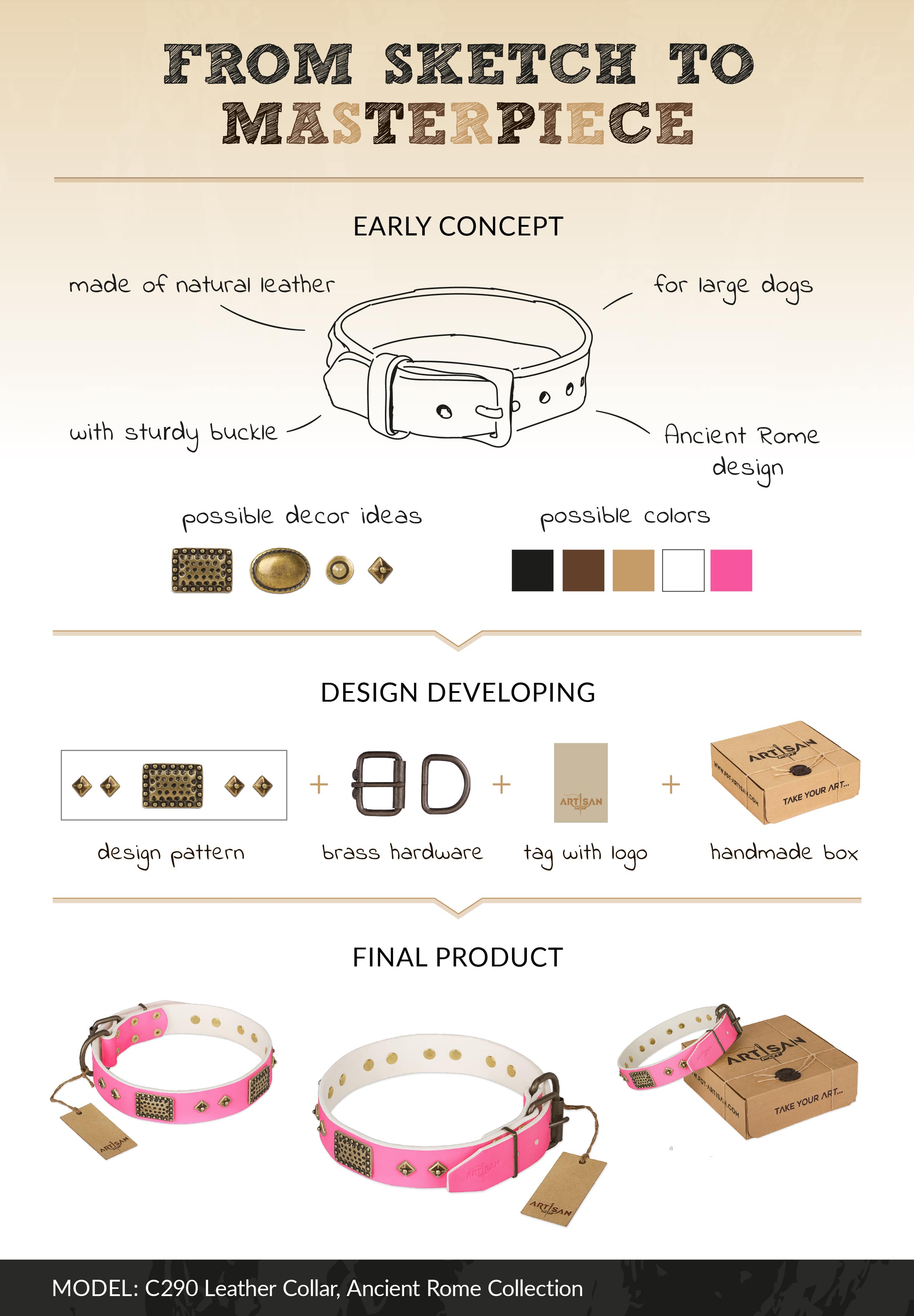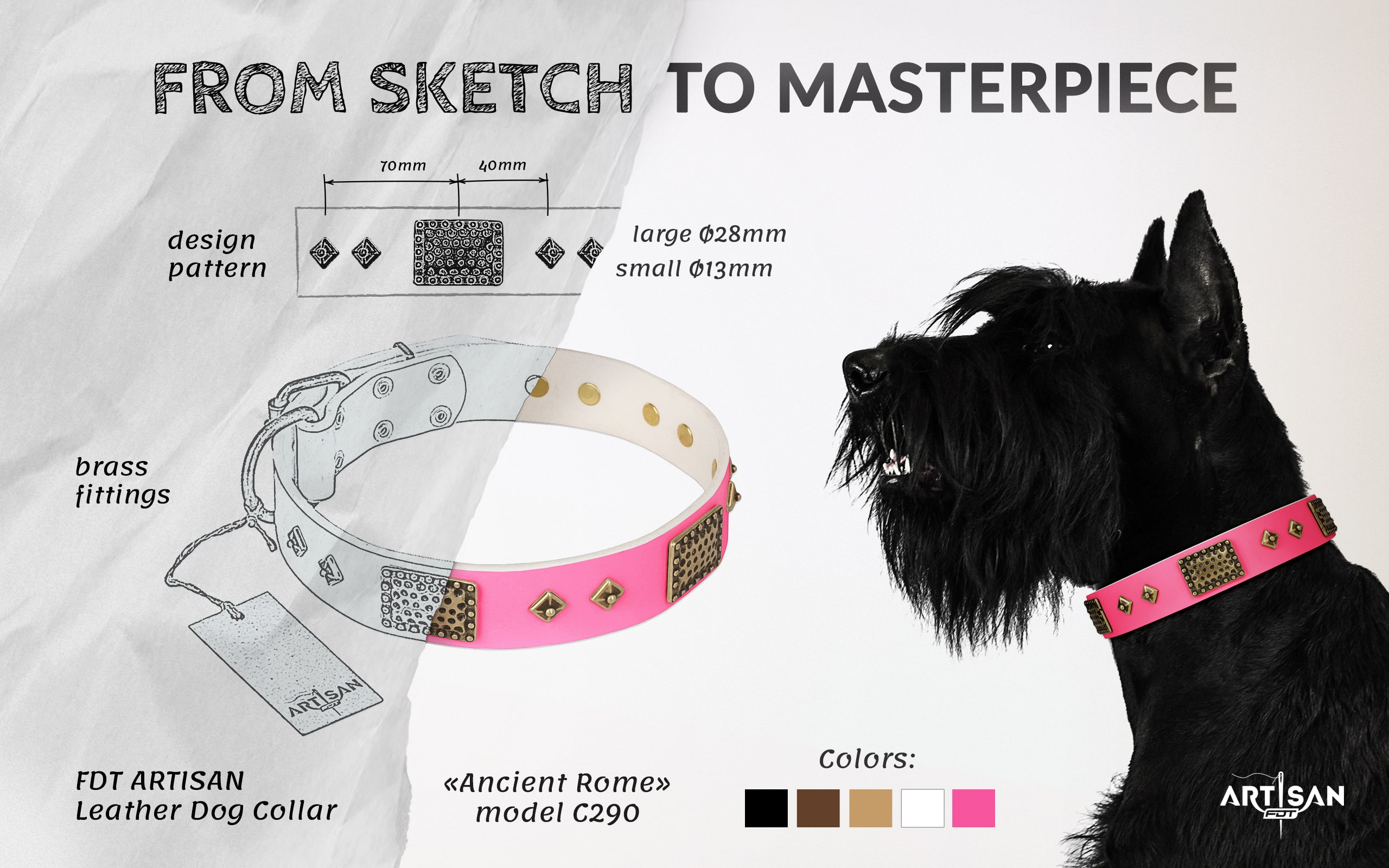 Ancient Rome Collection Handmade Pink Leather Dog Collar with Studs