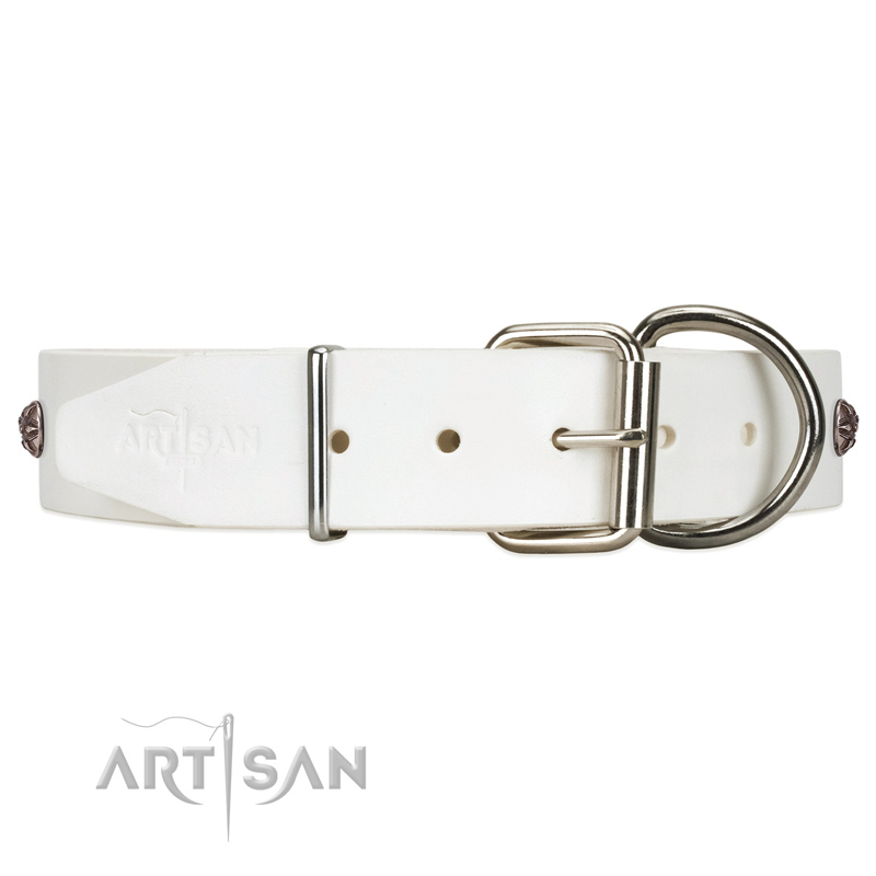 Handling your pet is reliable and easy with this FDT Artisan collar. It is, obviously, the best collar for dog daily wear and it is not only for its softness. It is made of full grain genuine leather, which is very strong and difficult to tear. The collar's edges are precisely polished. Due to this, the collar is protected from fraying out.