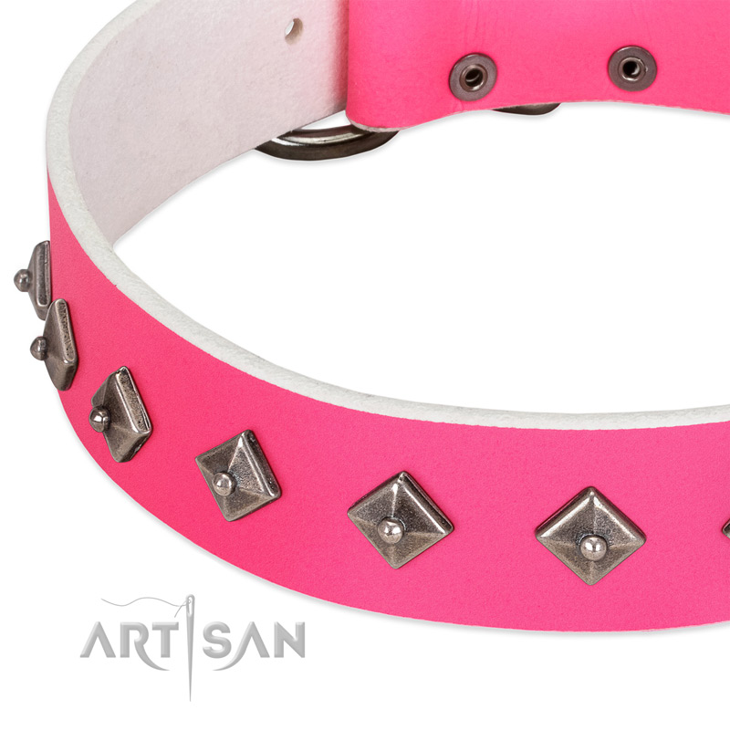 Fashionably Adorned Pink Leather Dog Collar to Attract Attention
