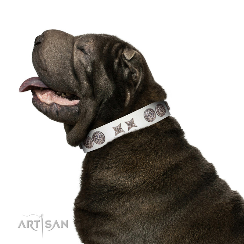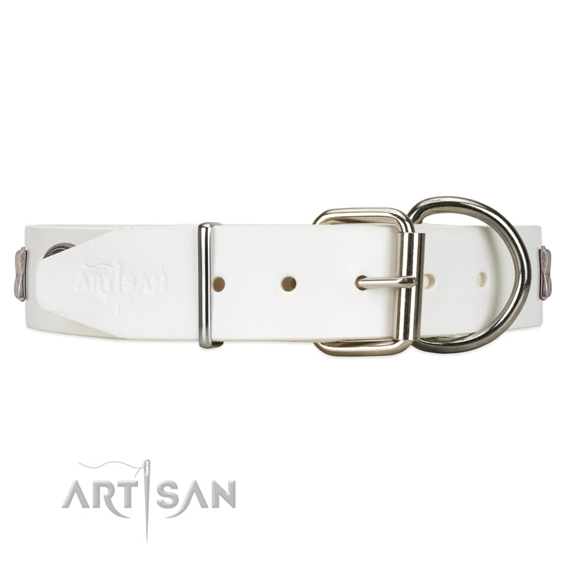 Stylish FDT Artisan white leather dog collar daily fashionable look