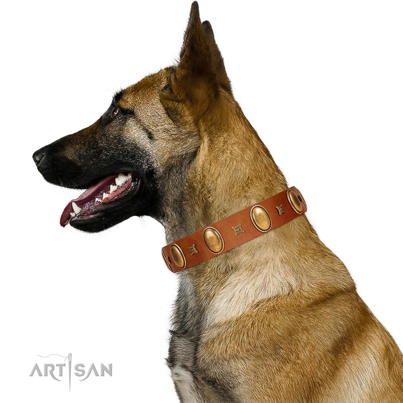 Perfect style tan leather dog collar for joyful pastime