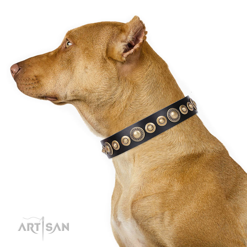 Pitbull inimitable full grain natural leather dog collar with adornments