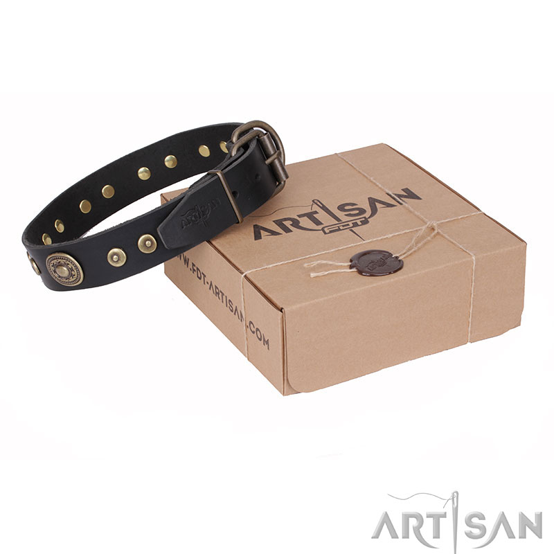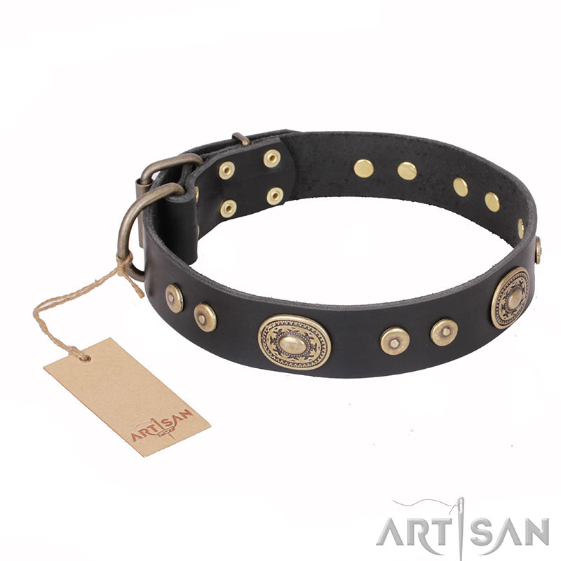 FDT Artisan Decorated Leather Dog Collar with Vintage Style Decor
