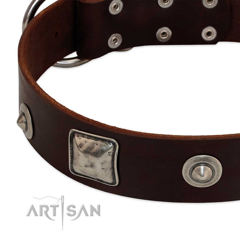 FDT Artisan Beautiful Leather Dog Collar with Silver-Like Decorations