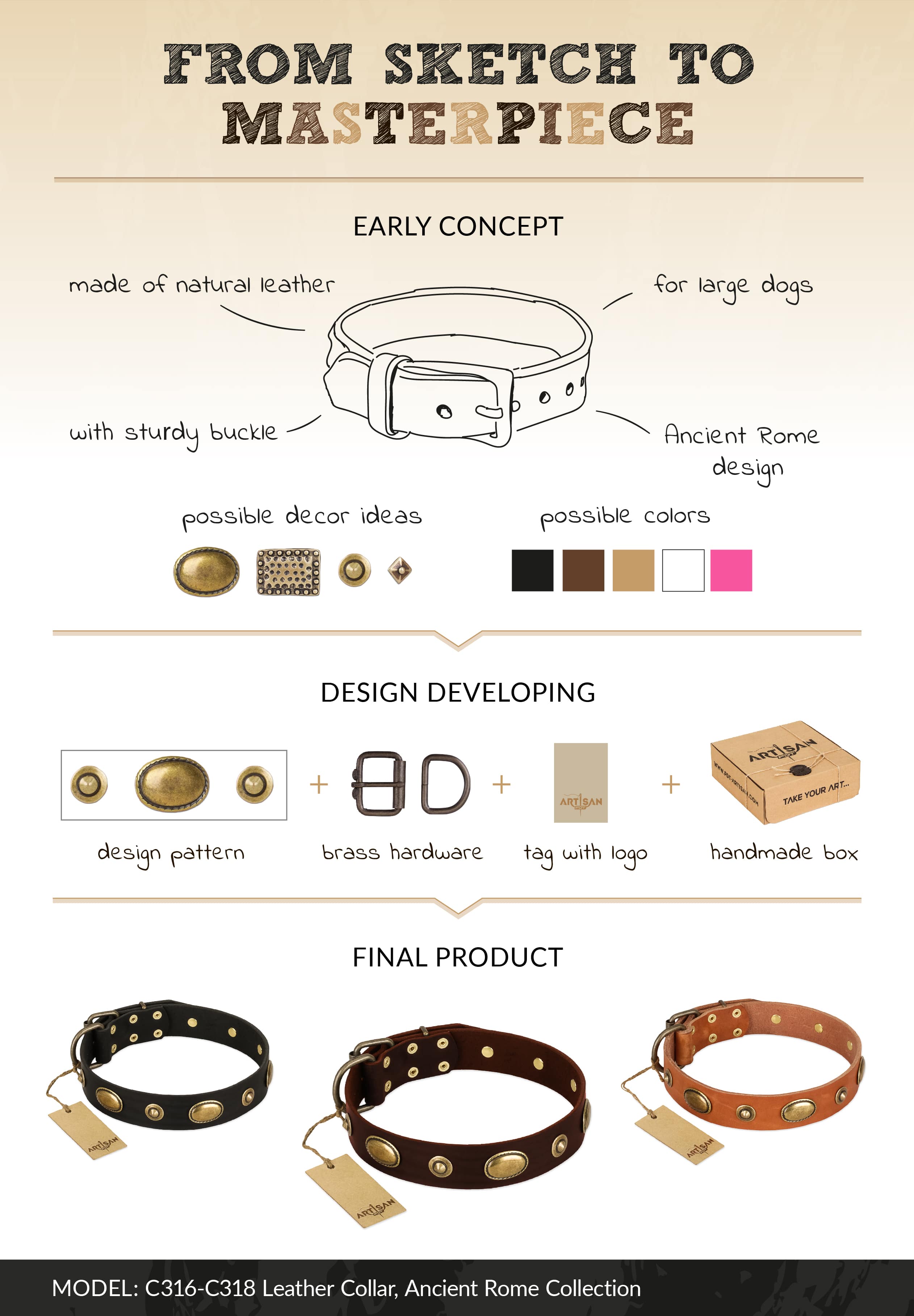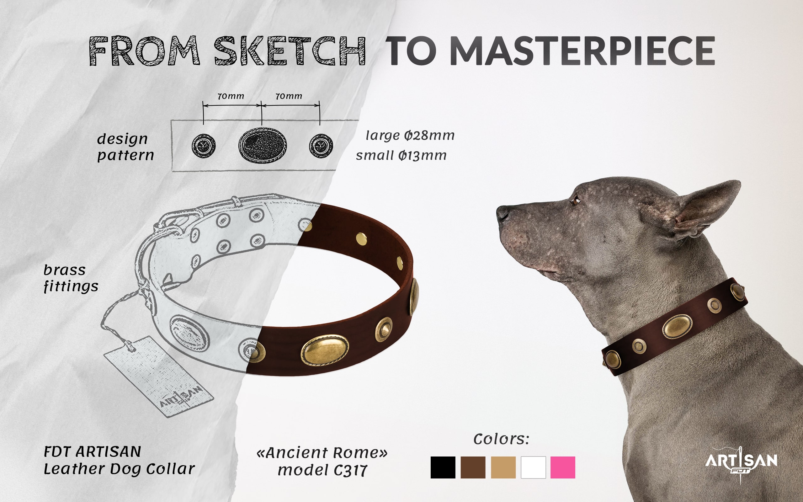 Ancient Rome Style Handmade Brown Leather Dog Collar with Studs