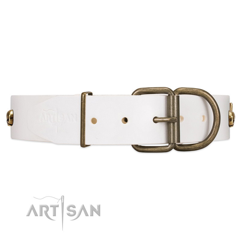 Decorated Dog Collar of Durable Genuine Leather for Everyday Walks