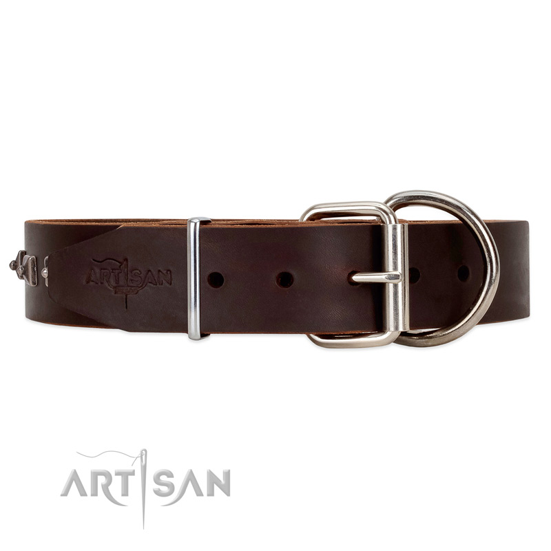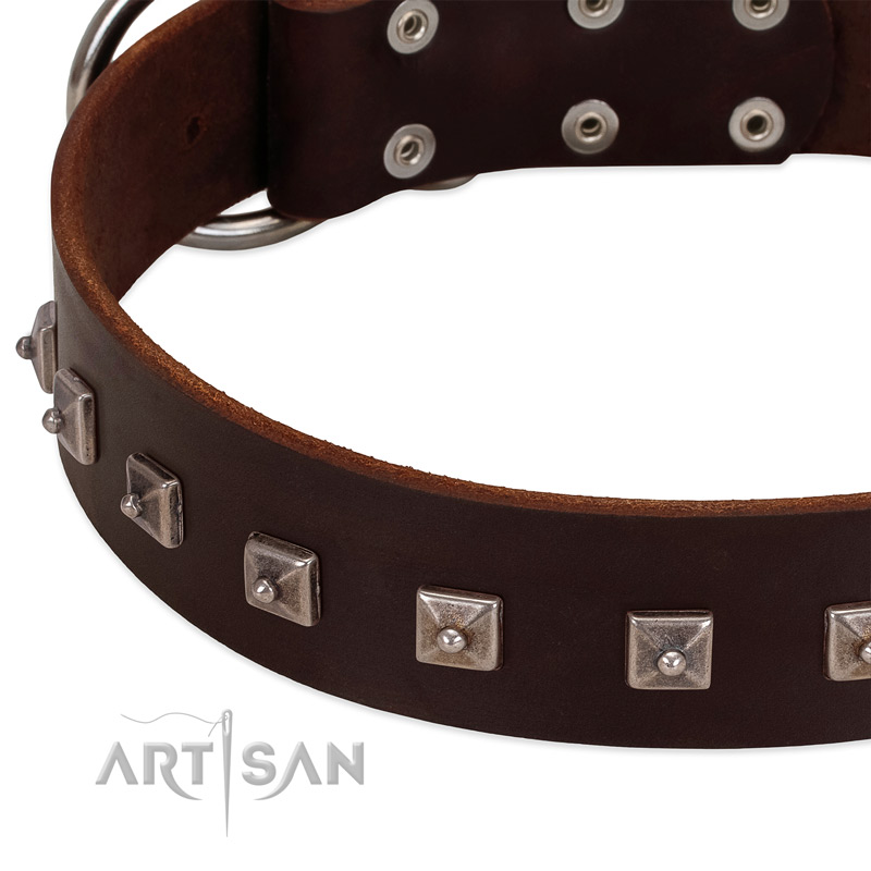Would you like to find a collar for everyday walks but with some special decoration? This wonderful brown leather collar with cool unique decorations helps you to control your dog on everyday walks, and at the same time, it's completely safe and comfortable for skin and fur of your canine. This extraordinary FDT Artisan collar is exactly what you are looking for!
