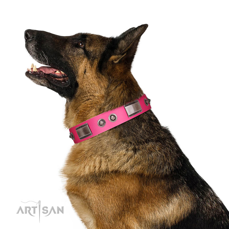 Extraordinary Artisan pink dog collar for comfortable everyday walks