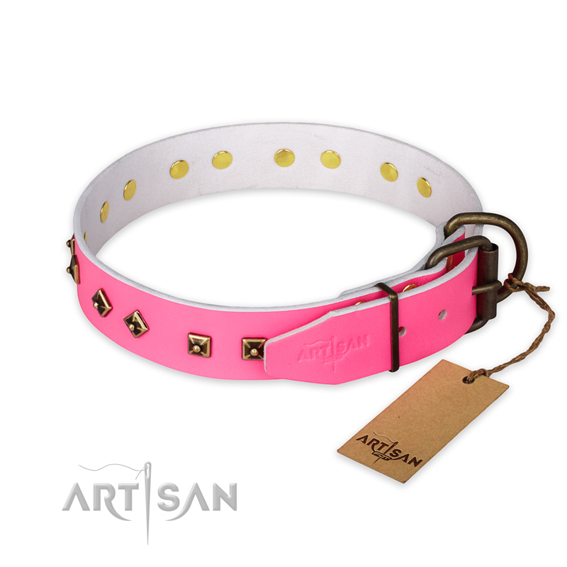 Pink Leather Dog Collar with Decor for Everyday Walking
