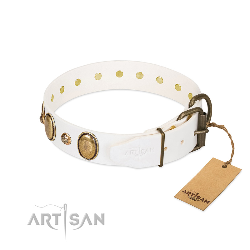 Incredible FDT Artisan White Leather Dog Collar for Pleasant Pastime