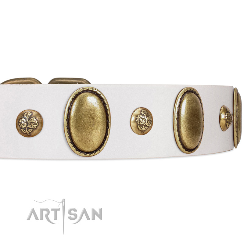 White Artisan leather dog collar for those who adore vintage style