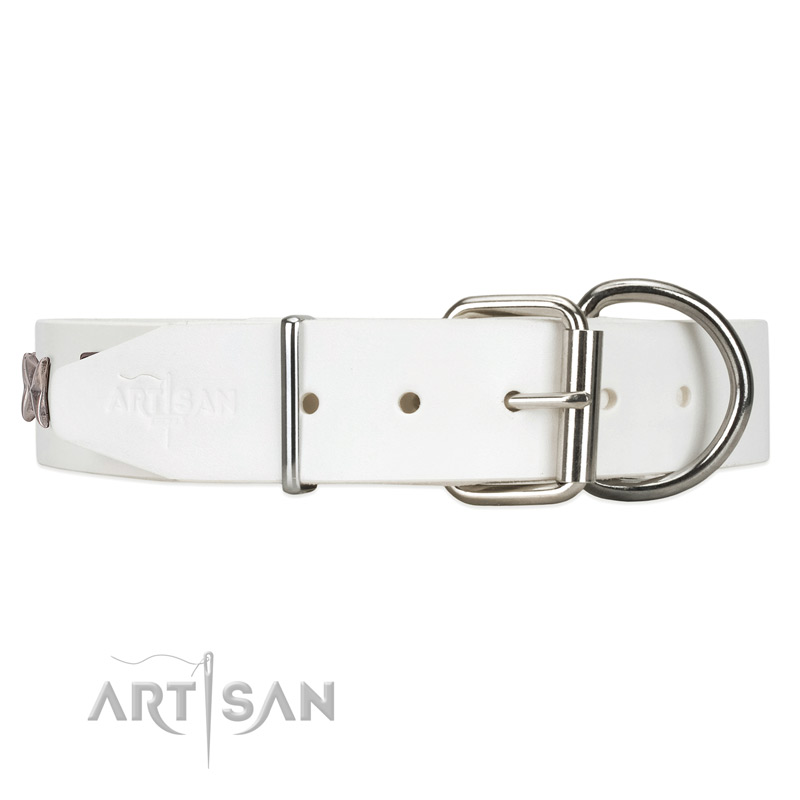 Designer white leather dog collar for adorable dog