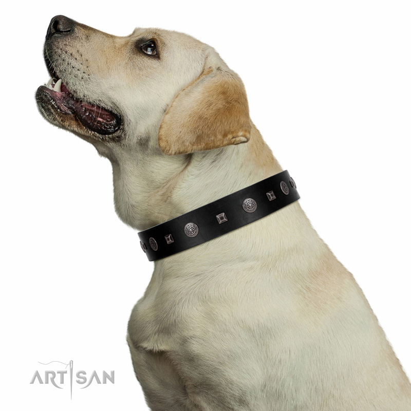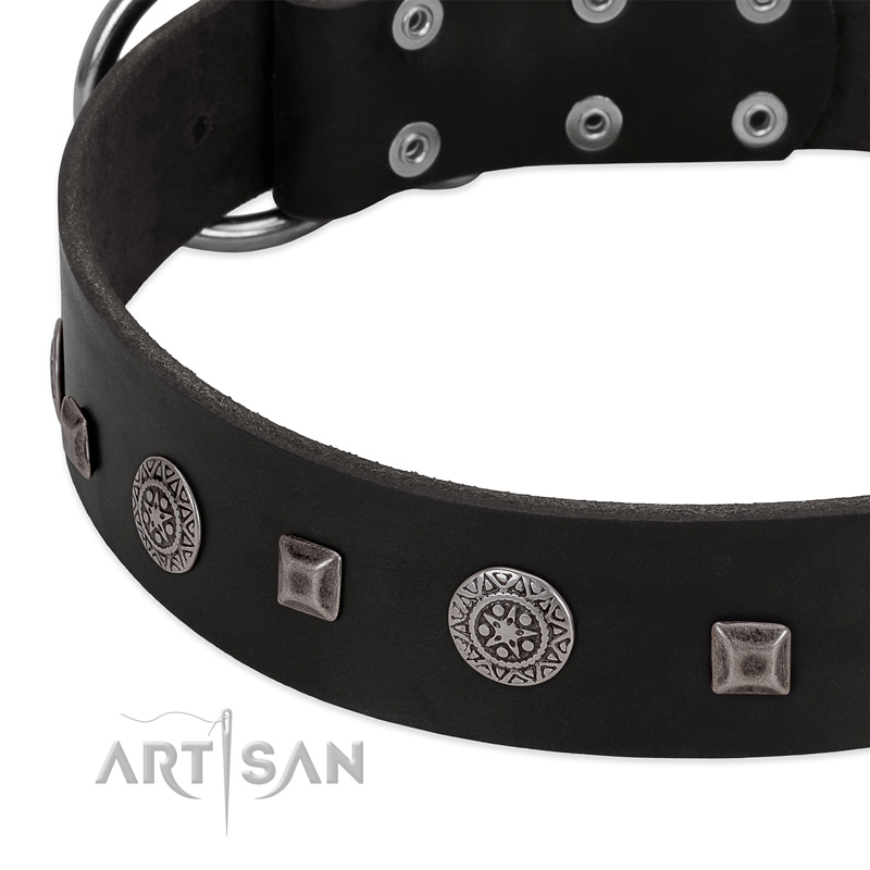 FDT Artisan Black Leather Dog Collar for Elegant Look