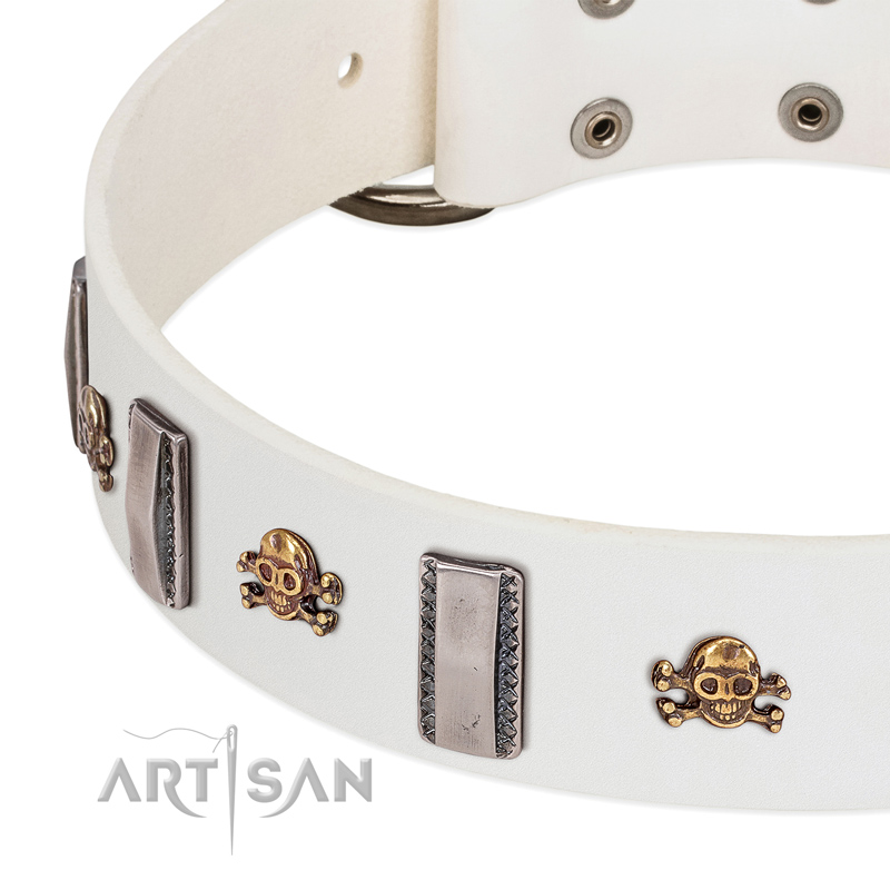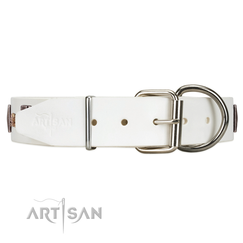 FDT Artisan White Leather Dog Collar for Stylish Walks