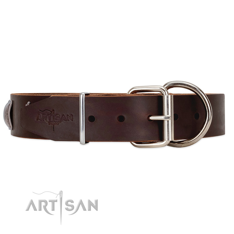 FDT Artisan Brown Leather Dog Collar for Daily Use