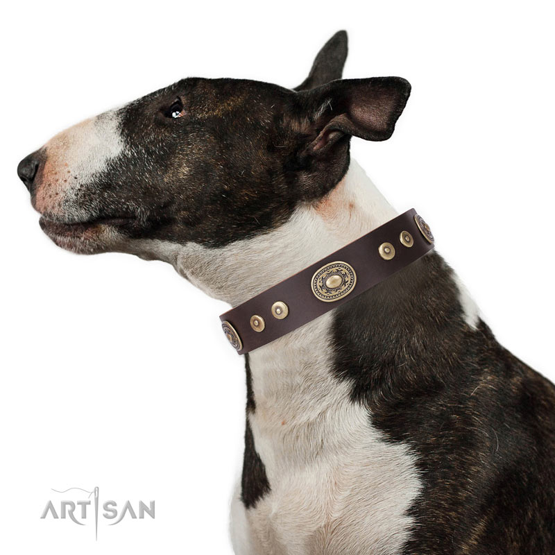 Bull Terrier unusual leather dog collar with decorations