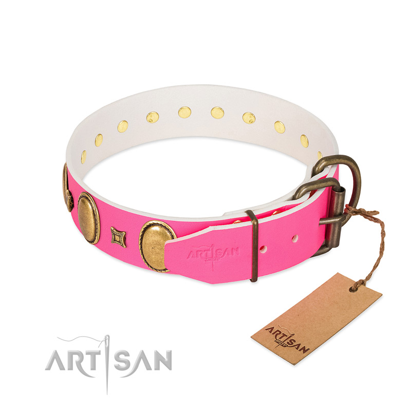 FDT Artisan Pink Leather Dog Collar for Unbelievably Fun Pastime