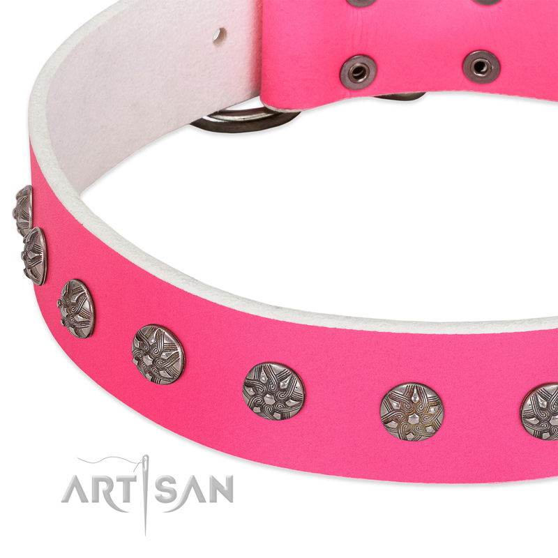 Pink leather dog collar delivers pleasant emotions