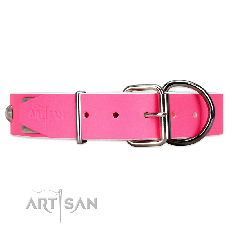 Bright FDT Artisan Pink Leather Dog Collar for Better Control