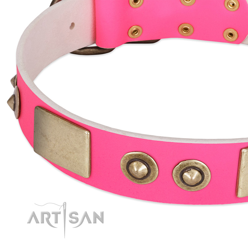 Exclusively Crafted Pink Leather Dog Collar