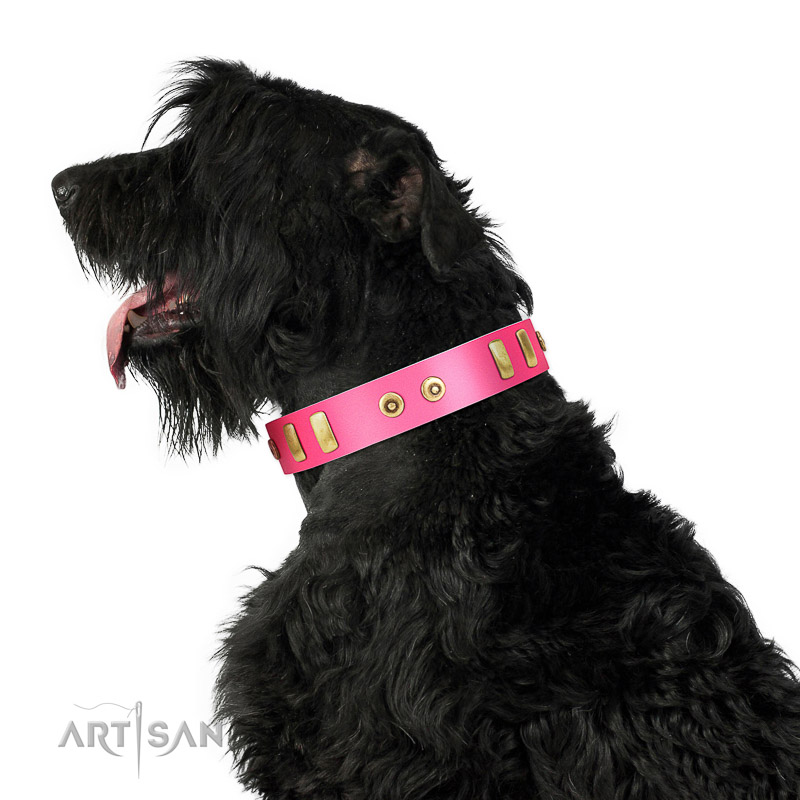 Stylish FDT Artisan pink dog collar made of top quality materials