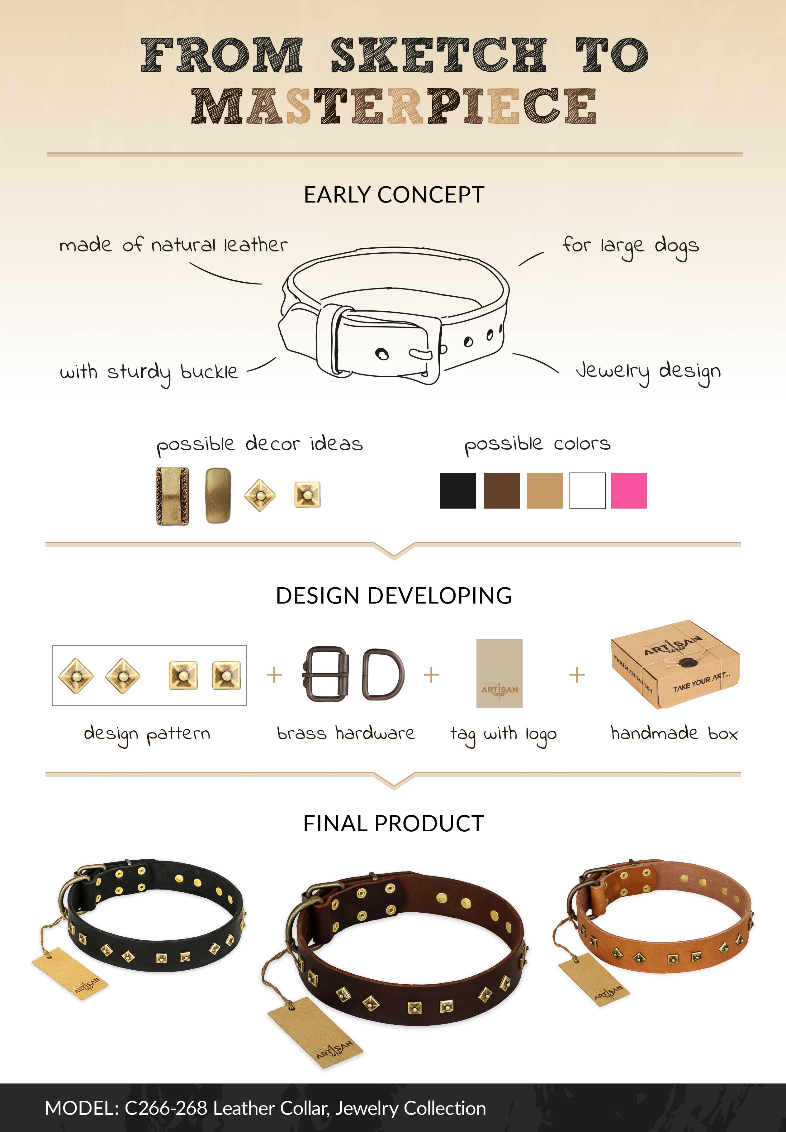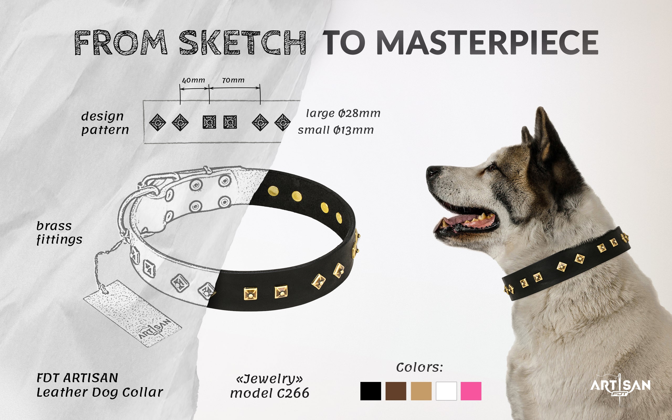 Central Asian Shepherd unique natural genuine leather dog collar with embellishments