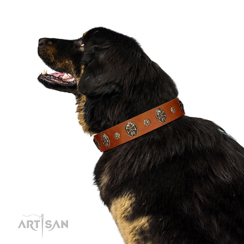Extraordinary tan leather dog collar for walking